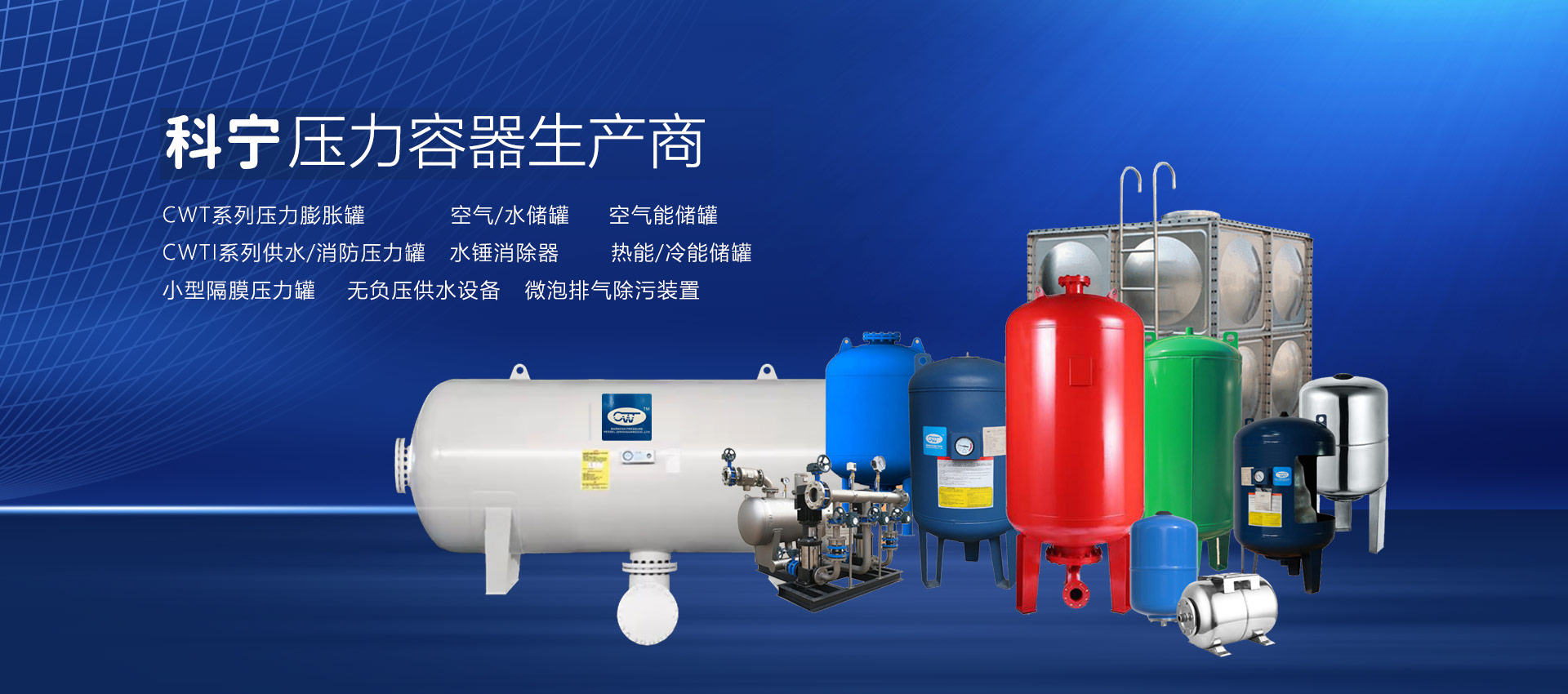 查看詳情 +壽光市科寧壓力容器(壽光)有限公司是專業(yè)從事壓力膨脹罐、空氣/水儲(chǔ)罐、空氣能儲(chǔ)罐、水錘罐、熱能/冷能儲(chǔ)罐、無負(fù)壓供水設(shè)備穩(wěn)流罐、耦合罐的研發(fā)、制造、加工、銷售、維修;經(jīng)營(yíng)國(guó)家允許范圍內(nèi)的貨物與技術(shù)的進(jìn)出口業(yè)務(wù)。材質(zhì)有碳鋼、不銹鋼、雙相鋼等。產(chǎn)品主要用于:恒壓變頻供水設(shè)備、無負(fù)壓供水設(shè)備、供暖系統(tǒng)、太陽(yáng)能、地暖、消防、空氣能、空調(diào)、大型供水系統(tǒng)(防水錘)。起到節(jié)能、穩(wěn)壓、防水錘、蓄能、環(huán)保等作用,延長(zhǎng)水泵和管道系統(tǒng)的使用壽命,確保供水系統(tǒng)穩(wěn)定運(yùn)行...